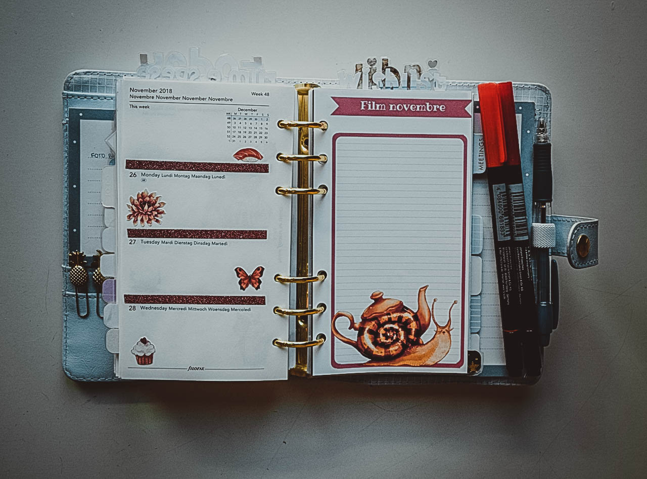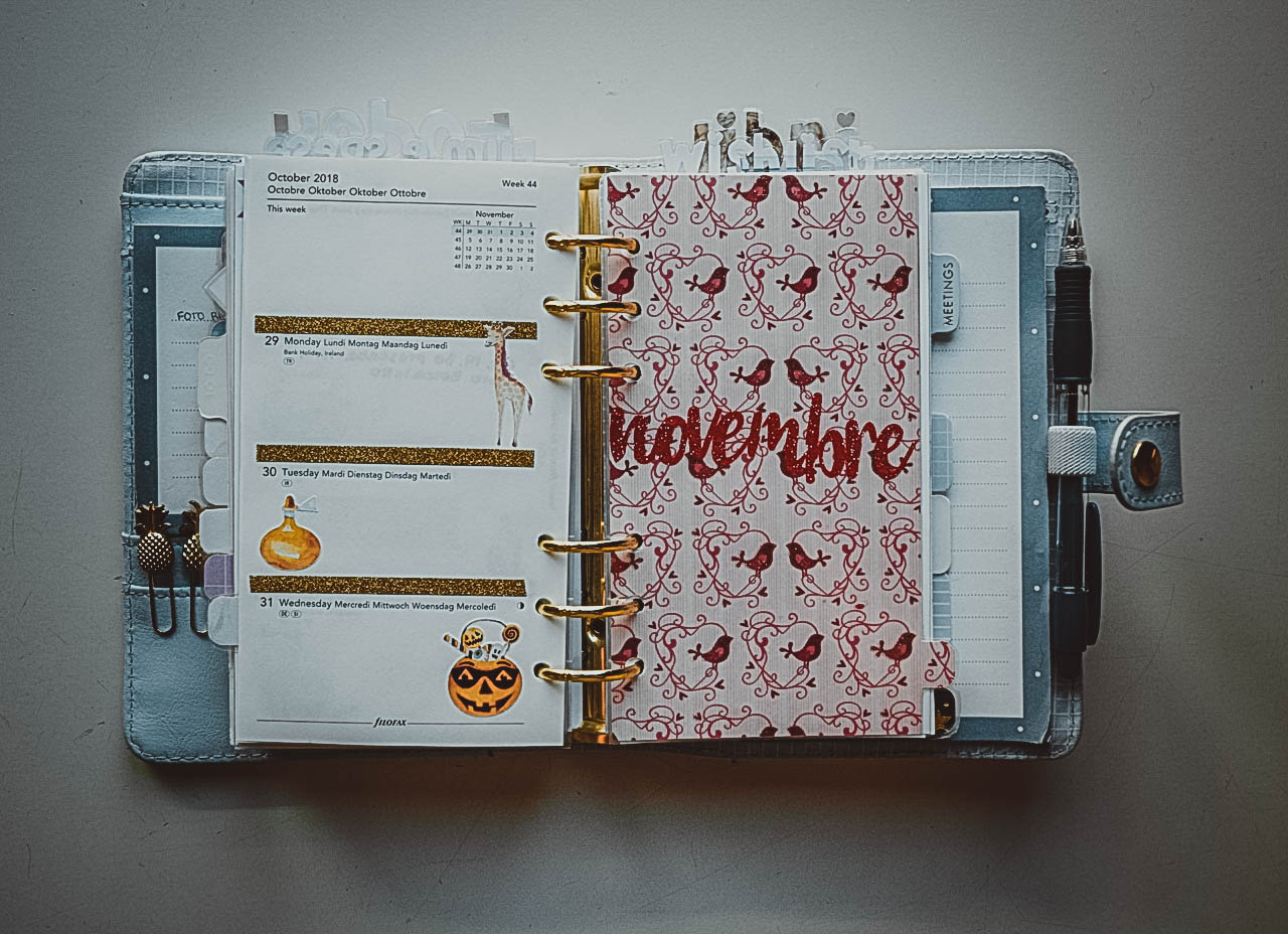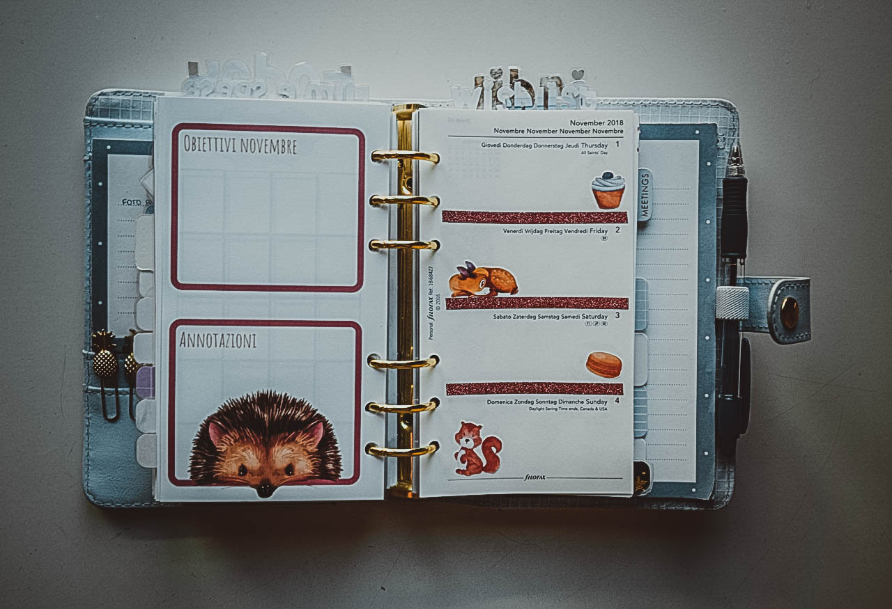 Dopo i fasti di novembre di cui vi parlavo nel post scorso, ci diamo al risparmio, anche perchè nell’agenda di novembre c’è una pagina molto triste, cioè quella delle tasse: non intendo comprare nulla che non sia un regalo di Natale o un libro (ma ne ho alcuni da finire, quindi non è nemmeno detto!). Per fortuna l’agenda dell’anno prossimo l’ho già fatta comprare a maggio (in Inghilterra, ovviamente, e qui vi ho già dato un super suggerimento), quindi posso già cominciare a decorarla!