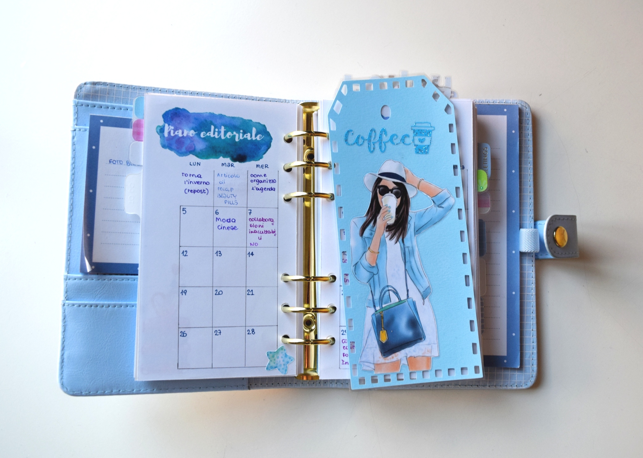 Il divisorio introduttivo è stato creato a mano e ho creato a mano anche la griglia del piano editoriale (clicca sulla miniatura per salvare l’immagine in formato originale).