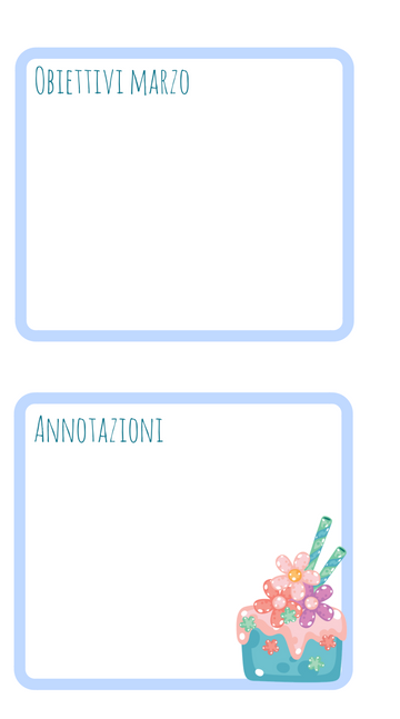 Per quanto riguarda le schede degli obiettivi, che potete scaricare cliccando la miniatura qui sotto, io vi consiglio sempre di darvi un paio di obiettivi mensili, non di più che altrimenti vi viene l’angoscia. Se poi qualcosa non dovesse andare per il verso giusto, io uso le annotazioni per ipotizzare un modo per fare meglio.