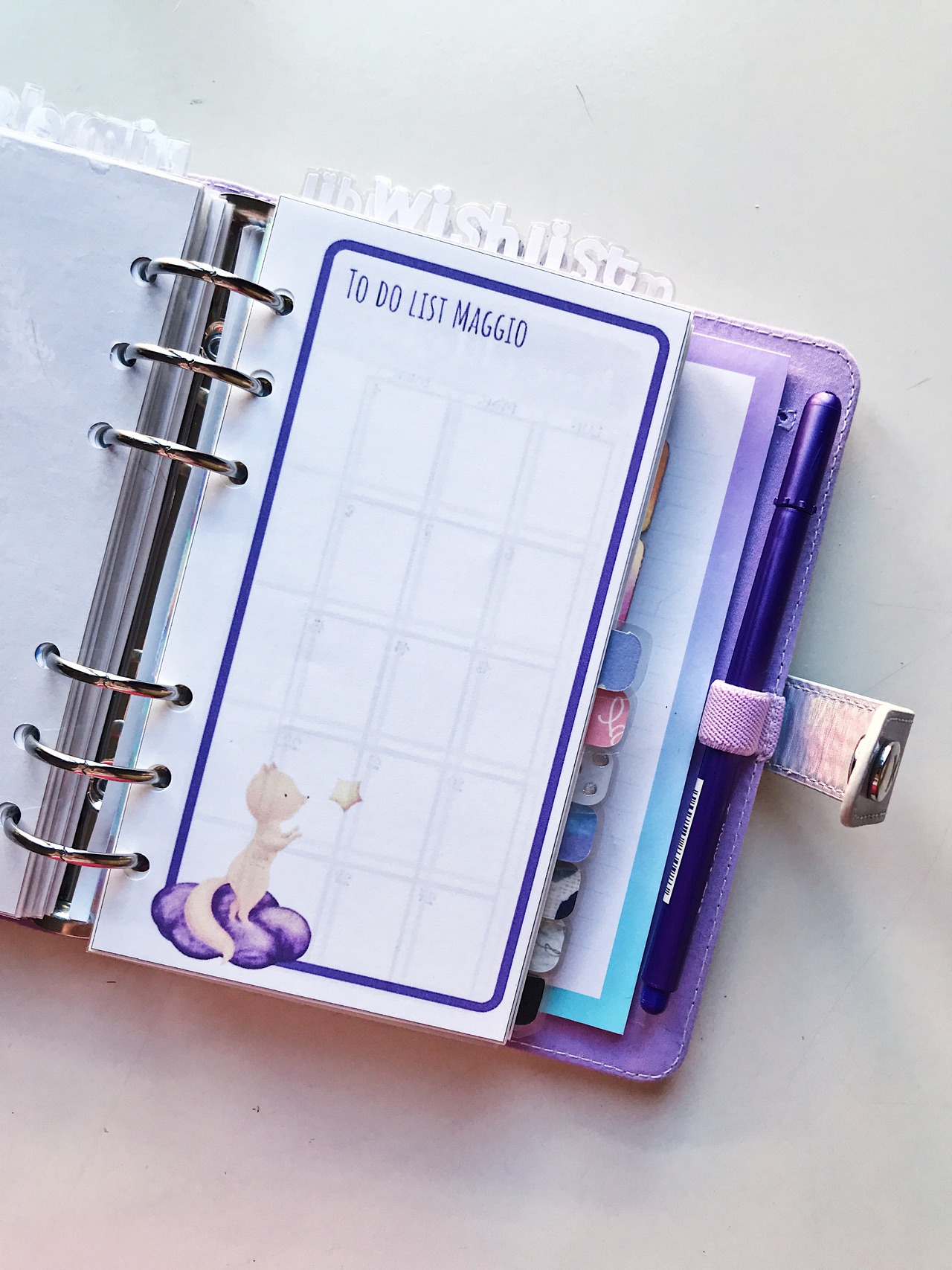Ebbene, alla fine è arriverà anche maggio! Con gli inserti sono abbastanza in anticipo, perché so che poi è un ponte continuo e probabilmente non riusciremo a stare dietro al pc e a tutto il resto. Ho deciso di premere forte sul pedale del viola: aprile per me è stato davvero un brutto mese, e avevo bisogno del mio colore preferito primaverile per ricaricarmi (ad ora, sto ancora cercando della carta per creare inserti bordeaux per l’autunno!)